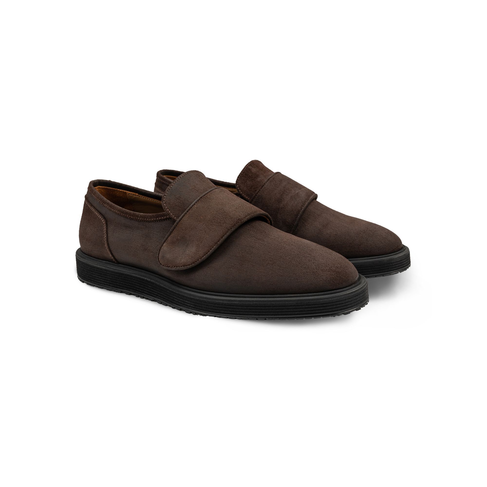 Σε brushed καφέ nubuck δέρμα, η αρχιτεκτονική του φόρμα κλείνει με λουράκι, συνδυάζοντας λειτουργικότητα και διακριτική κομψότητα. Η micro ενδιάμεση σόλα και η εξωτερική Vibram® ισορροπούν και εξασφαλίζουν απορρόφηση κραδασμών και ευελιξία για σίγουρο, αθόρυβο βήμα. Η δερμάτινη επένδυση full-grain αναπνέει και «αγκαλιάζει» το πόδι με την χρήση. Ταιριάζει με παντελόνια με πιέτα και unstructured σακάκια ή με chinos και εκλεπτυσμένα πλεκτά. Σχεδιασμένο από τηνElio Evan και κατασκευασμένο στην Ιταλία.