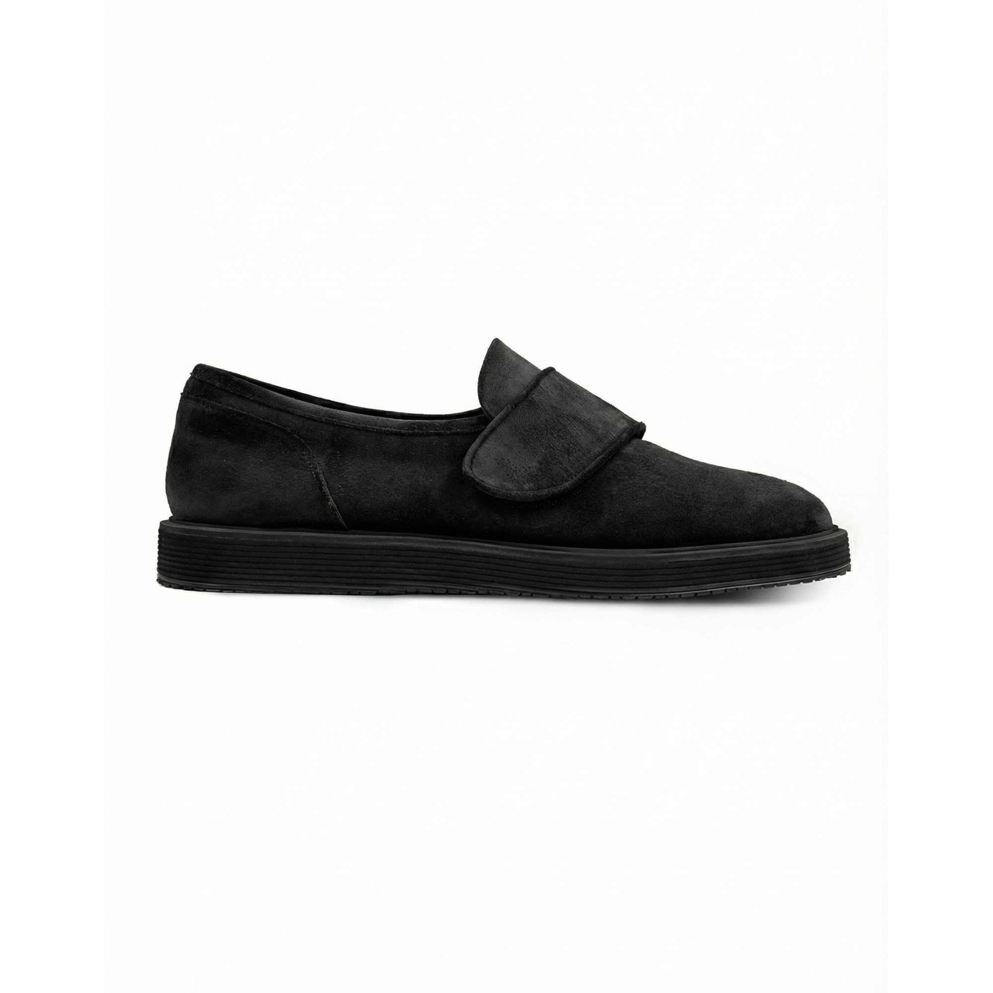 Λιτό και ακριβές, το Monza single monk strap παπούτσι σε μαύρο nubuck δέρμα αποτυπώνει την ραφιναρισμένη καθαρότητα του οίκου. Το λουράκι με αγκράφα αφήνει καθαρό το κουντεπιέ για αδιάκοπη γραμμή, αναδεικνύοντας την καμπύλη του καλουπιού. Η micro ενδιάμεση σόλα απορροφά τους κραδασμούς, ενώ η Vibram® σόλα προσφέρει σταθερό κράτημα και ομαλή κύλιση στο βήμα. Η full-grain δερμάτινη επένδυση διαχειρίζεται την υγρασία και «δένει» σταδιακά με το πόδι για άνεση διάρκειας. Από soft-shouldered κοστούμια έως refined casual ντύσιμο, αποτελεί ευέλικτη επιλογή για όσους προτιμούν διακριτική κομψότητα. Αποκλειστικός σχεδιασμός Elio Evan Studio με χειροποίητη ιταλική κατασκευή.
