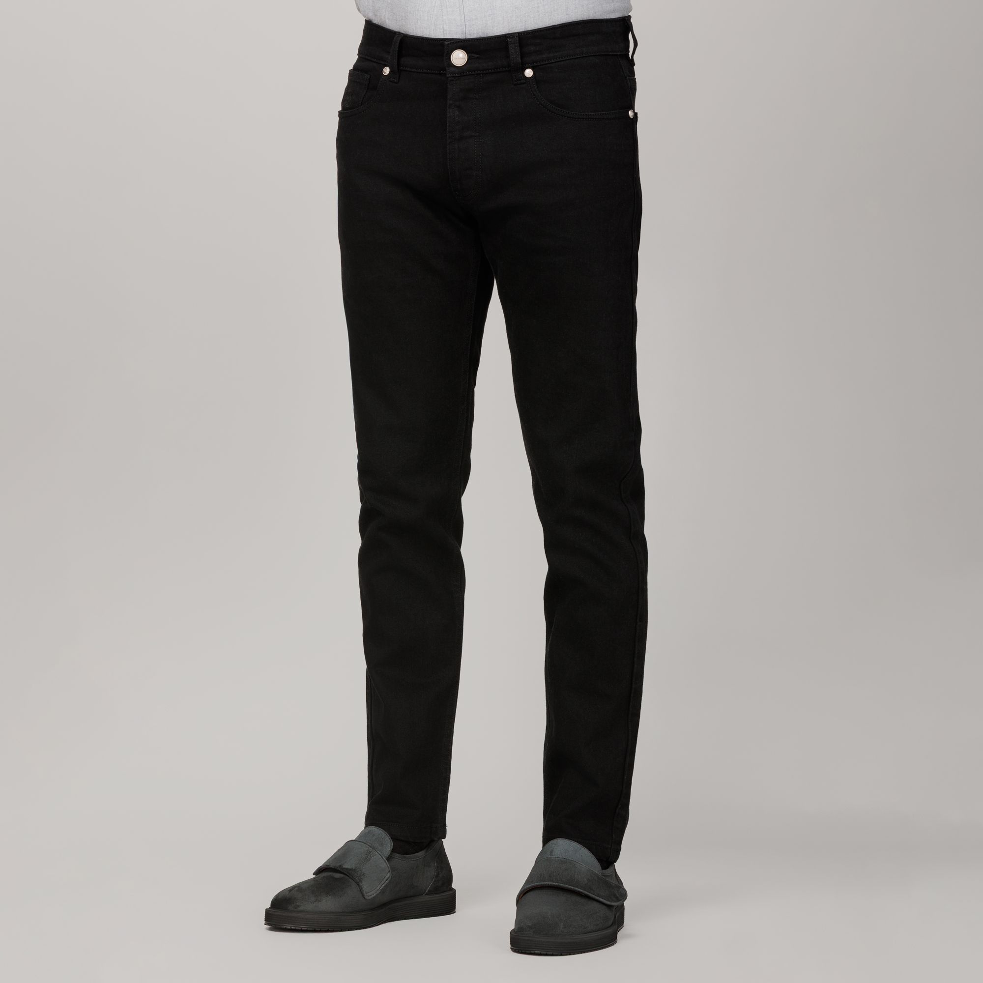 Η εκλεπτυσμένη απλότητα του Elio Evan αποτυπώνεται στο ανδρικό μαύρο τζιν παντελόνι στο μοντέλο Soho. Κατασκευασμένο στην Ιταλία από denim ύφασμα πλήρους χρώματος, προσφέρει απαλή υφή, ισορροπημένη δομή και τέλεια εφαρμογή.