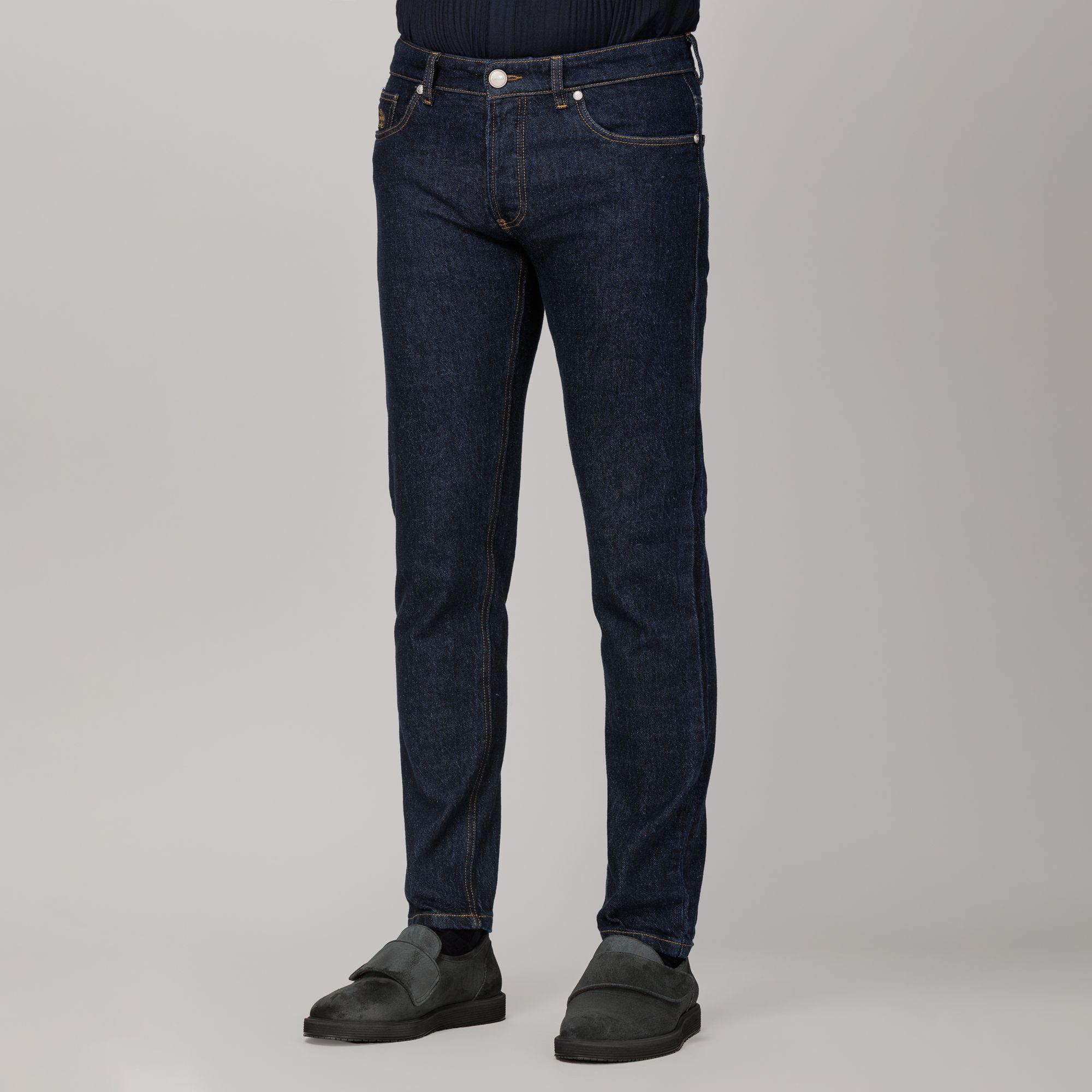 Το blue jean στο μοντέλο Soho είναι φτιαγμένο από denim ύφασμα πλήρους χρώματος σε σκούρο μπλε χρώμα, με καθαρή υφή και φυσική λάμψη που αναδεικνύεται με το χρόνο.