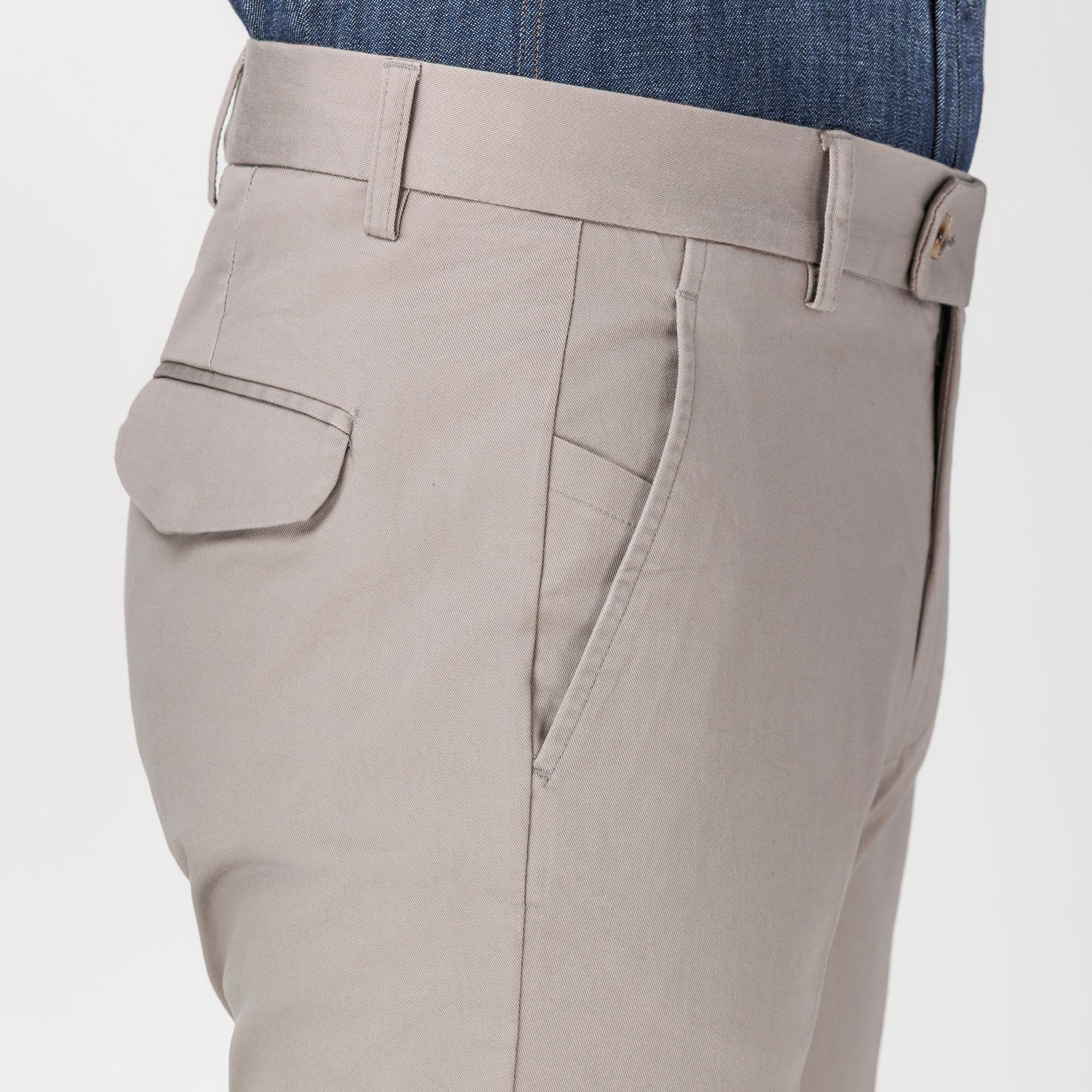 Η Elio Evan παρουσιάζει ένα ανδρικό chino παντελόνι σε γκρι απόχρωση, σχεδιασμένο για κομψότητα και ευελιξία. Κατασκευασμένο από ελαστικό πλυμένο βαμβάκι drill για μαλακή υφή, διατηρεί την ραφιναρισμένη του γραμμή και την ανθεκτικότητα του. Η ζώνη με προέκταση κουμπώματος, οι λοξές πλαϊνές τσέπες και οι πίσω τσέπες με καπάκι και κουμπί πίεσης προσφέρουν λειτουργικότητα και στυλ. Η άψογη εφαρμογή το καθιστά βασικό κομμάτι για smart-casual εμφανίσεις όλο τον χρόνο.
