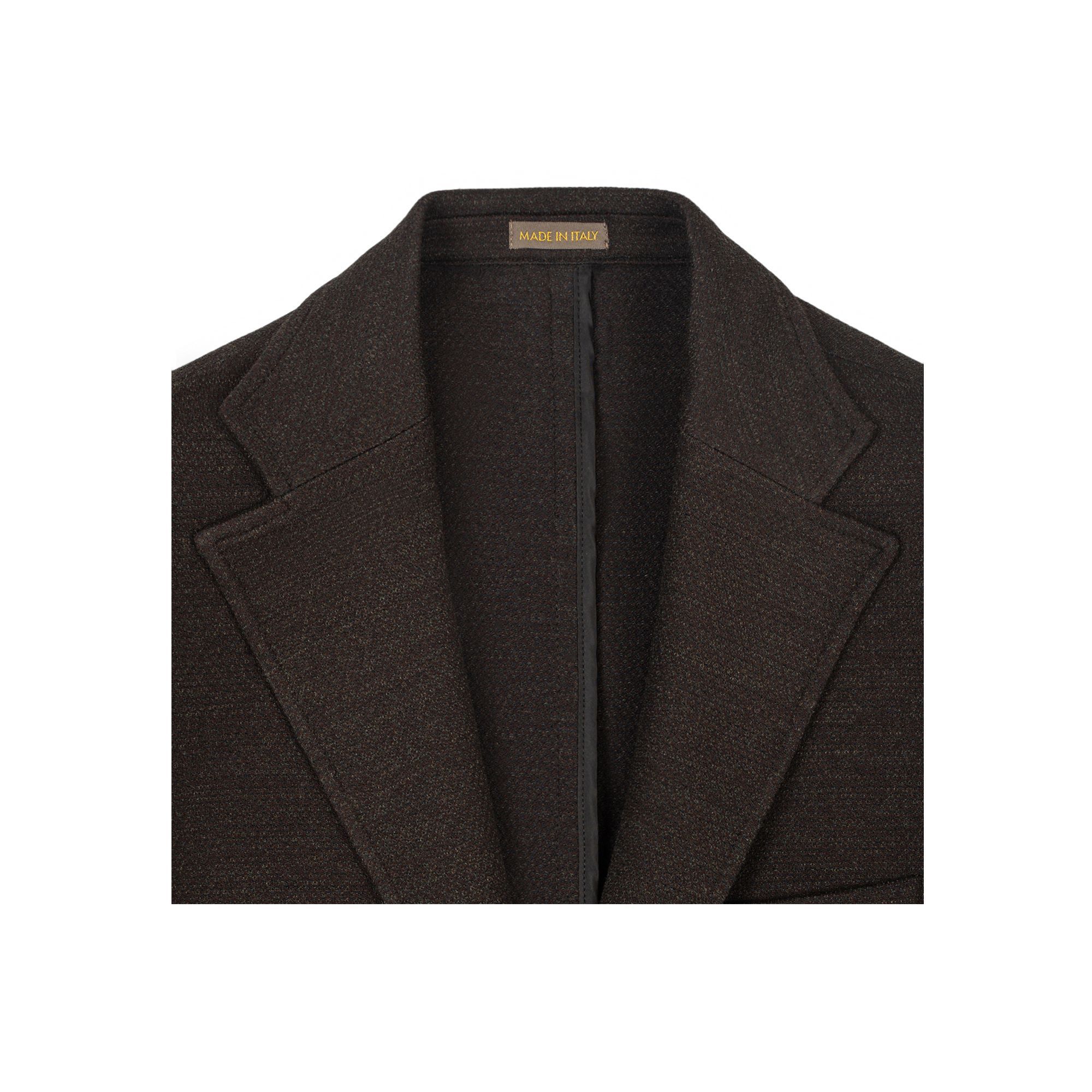Το καφέ πλεκτό μπλέιζερ του Elio Evan συνδυάζει την άνεση της πλέξης jersey με την κομψότητα της ιταλικής ραπτικής. Ιδανικό για smart-casual και business looks.