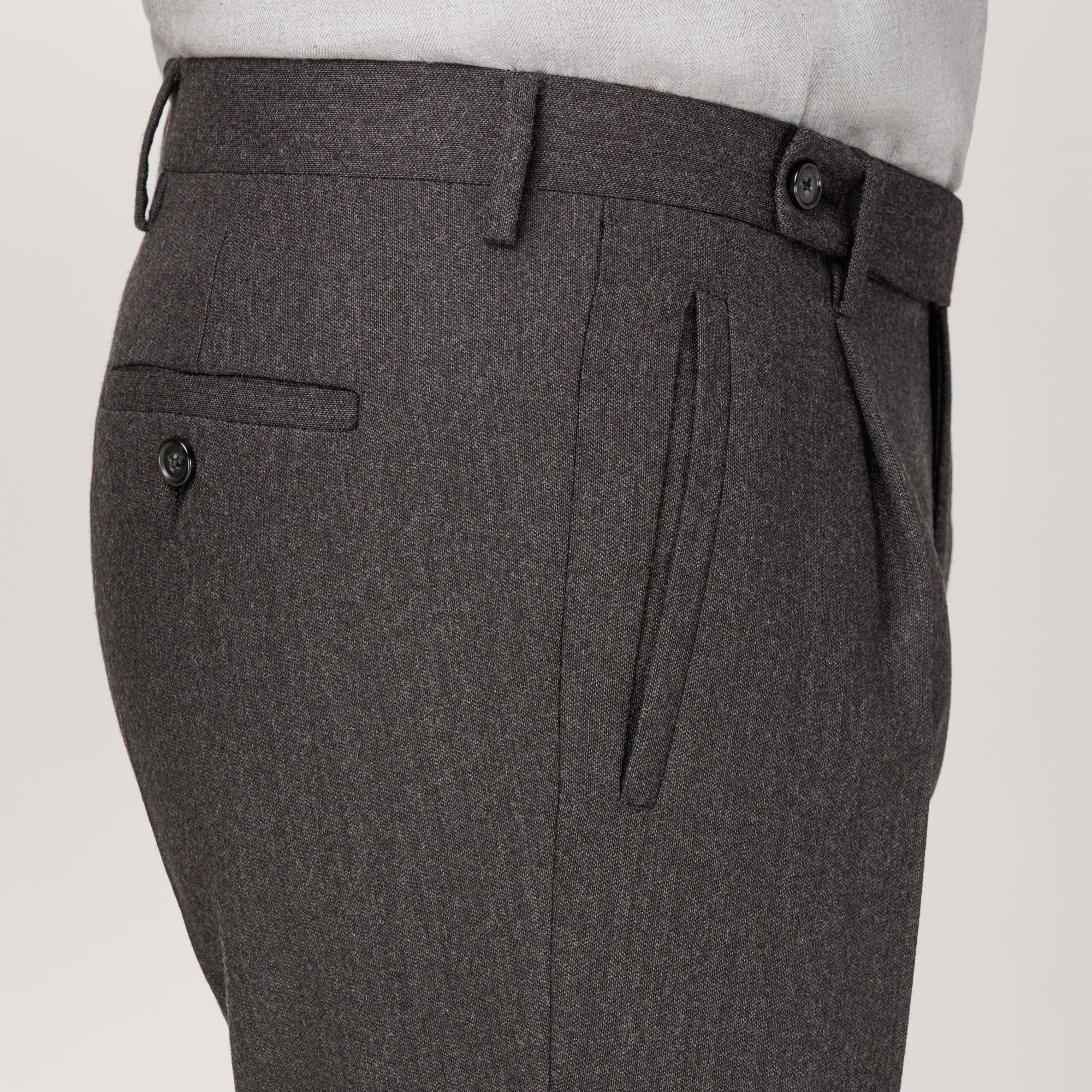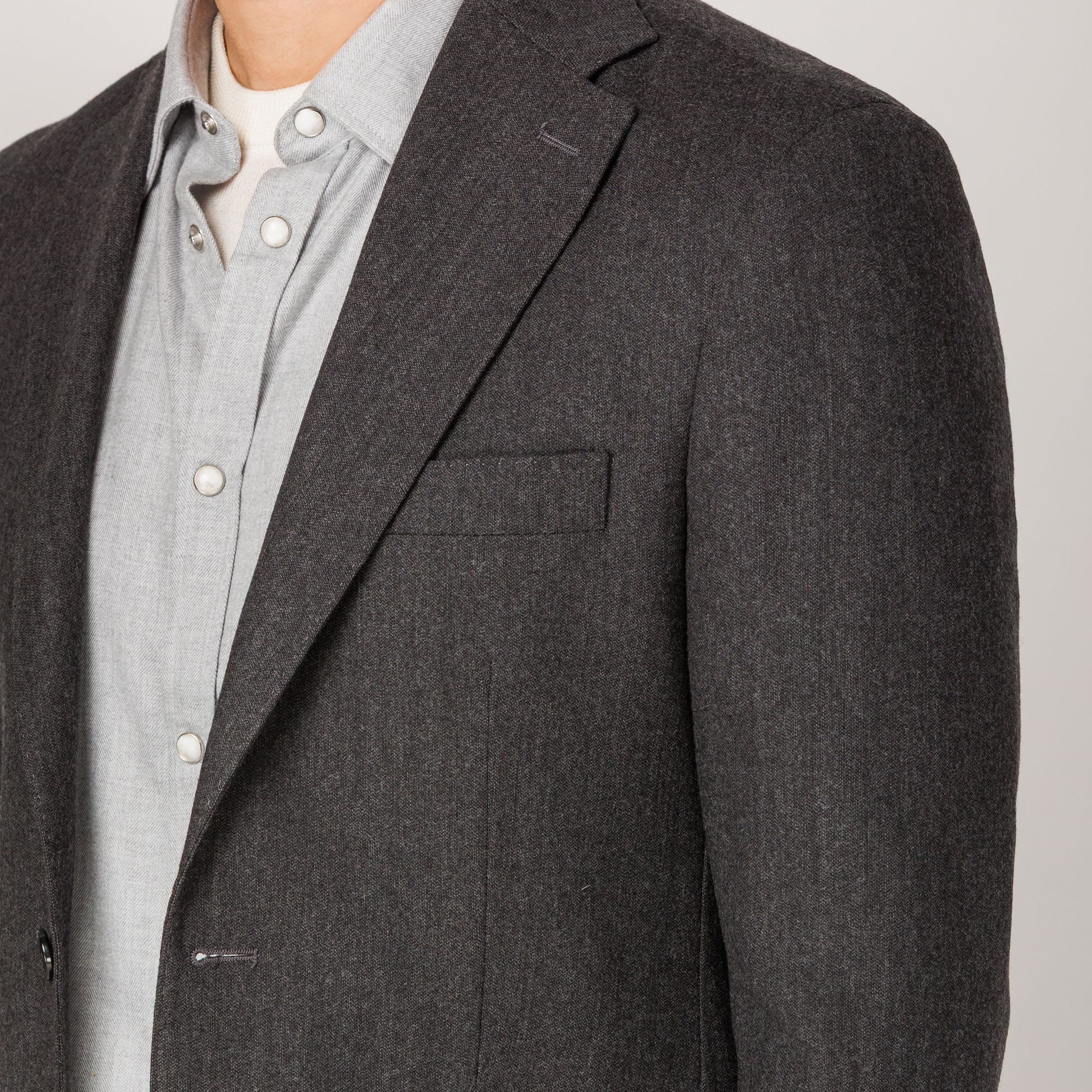 Εντυπωσιακό ανδρικό κοστούμι γκρι ανθρακί από 100% παρθένο μάλλινο crepe, με μαλακή υφή και καθαρή γραμμή. Το σακάκι Vomero διαθέτει φυσικούς ώμους και ημιφοδραρισμένη κατασκευή για άνεση και κομψότητα. Το μονόπιετο παντελόνι εξασφαλίζει τέλεια εφαρμογή και διακριτικό στιλ.