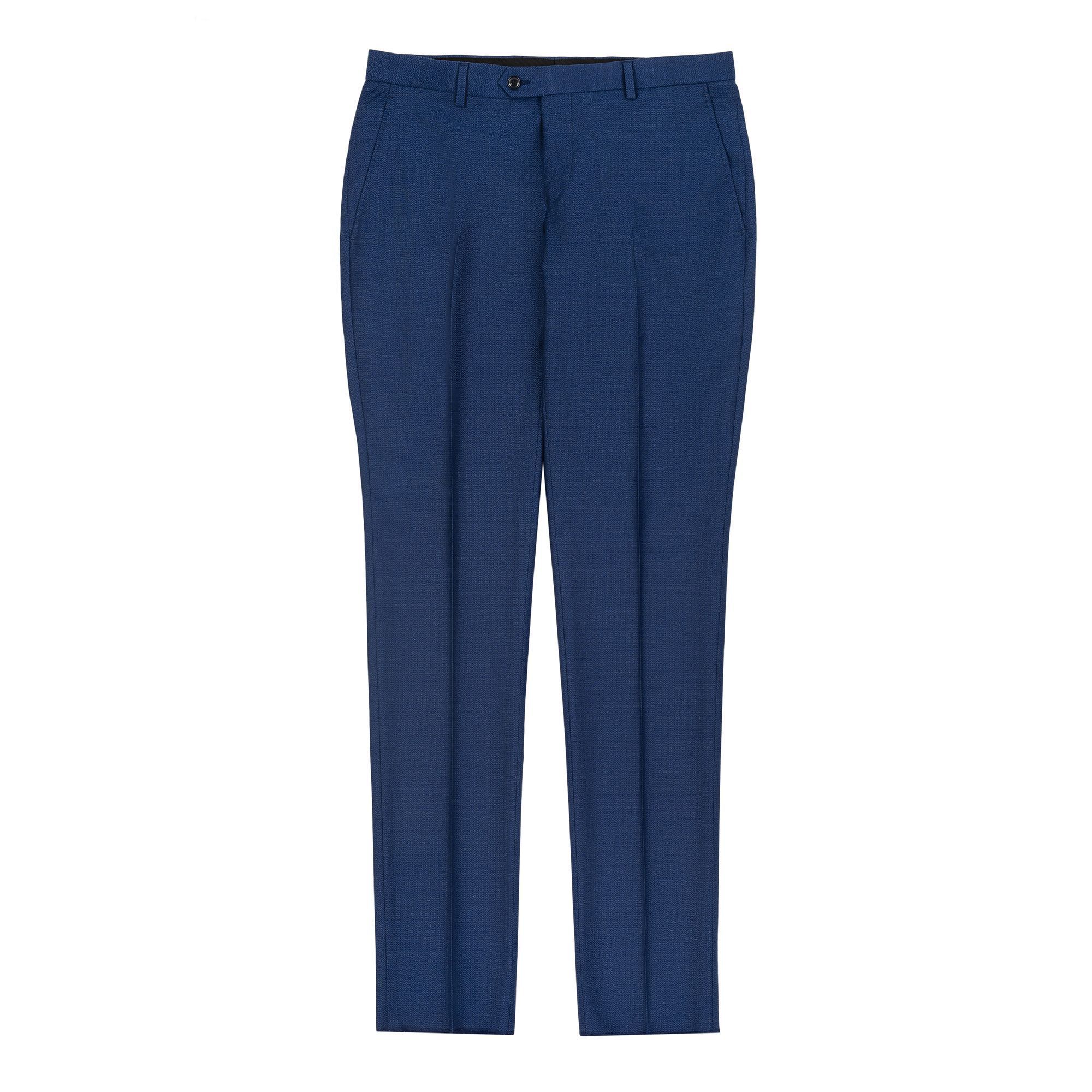 Ένα κοστούμι τριών κομματιών μπλε ρουά που περιλαμβάνει ένα σακάκι με peak πέτο, ένα γιλέκο με ελαστική μέση και ένα άπιετο παντελόνι, σε ένα μείγμα από ελαστικό παρθένο μαλλί και φυσικό μετάξι. Η εφαρμογή Bristol της σειράς εξασφαλίζει τη μέγιστη άνεση, ενώ αναδιαμορφώνει το σώμα στην πιο λεπτή του προβολή.