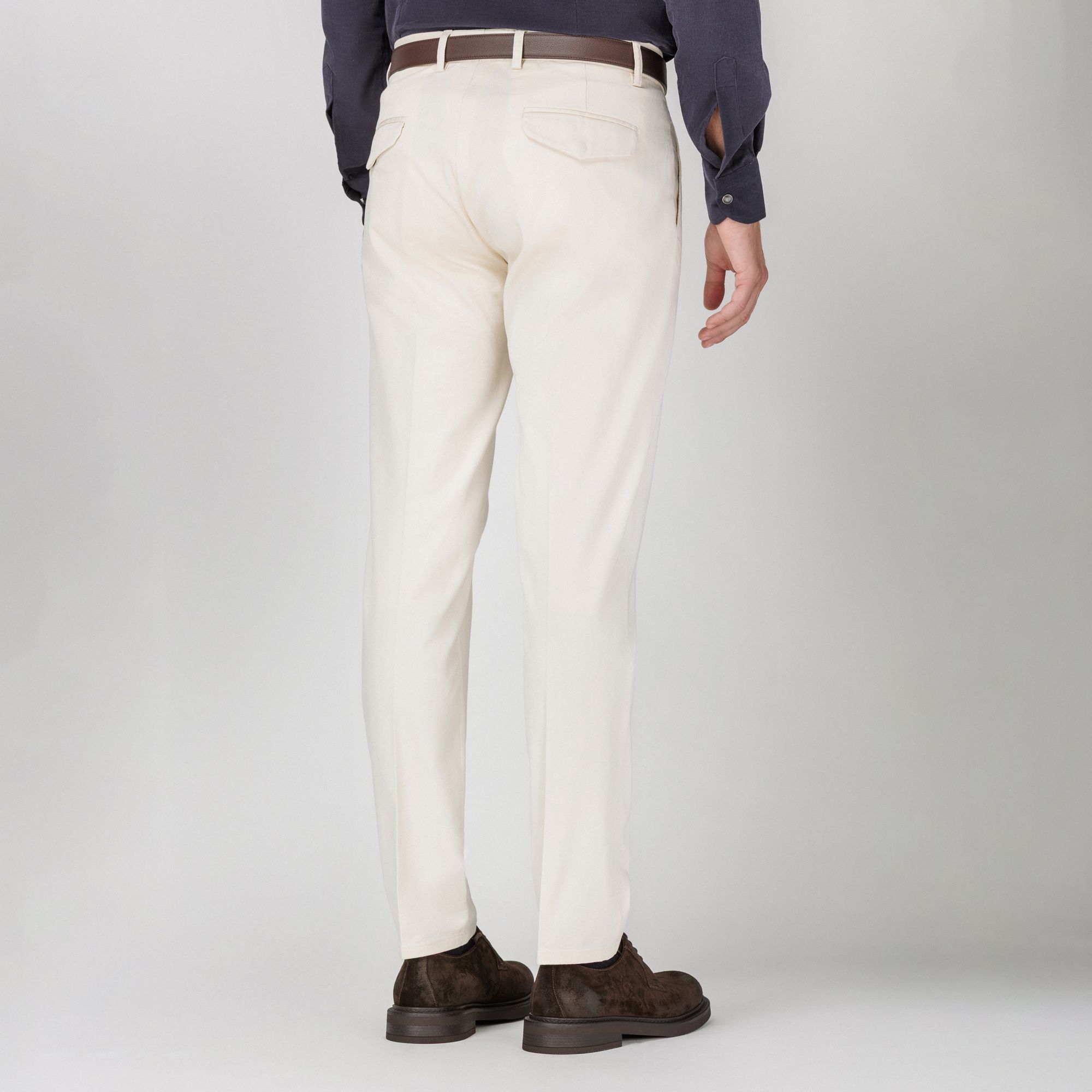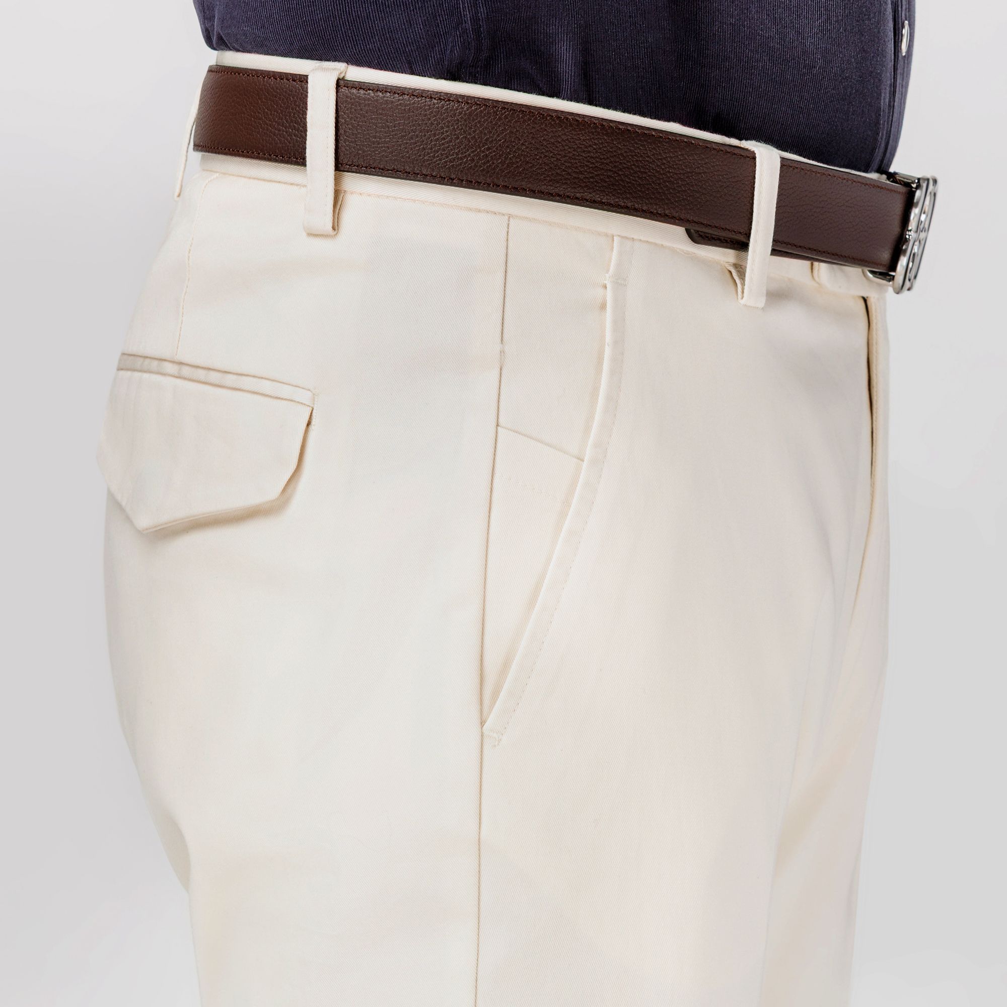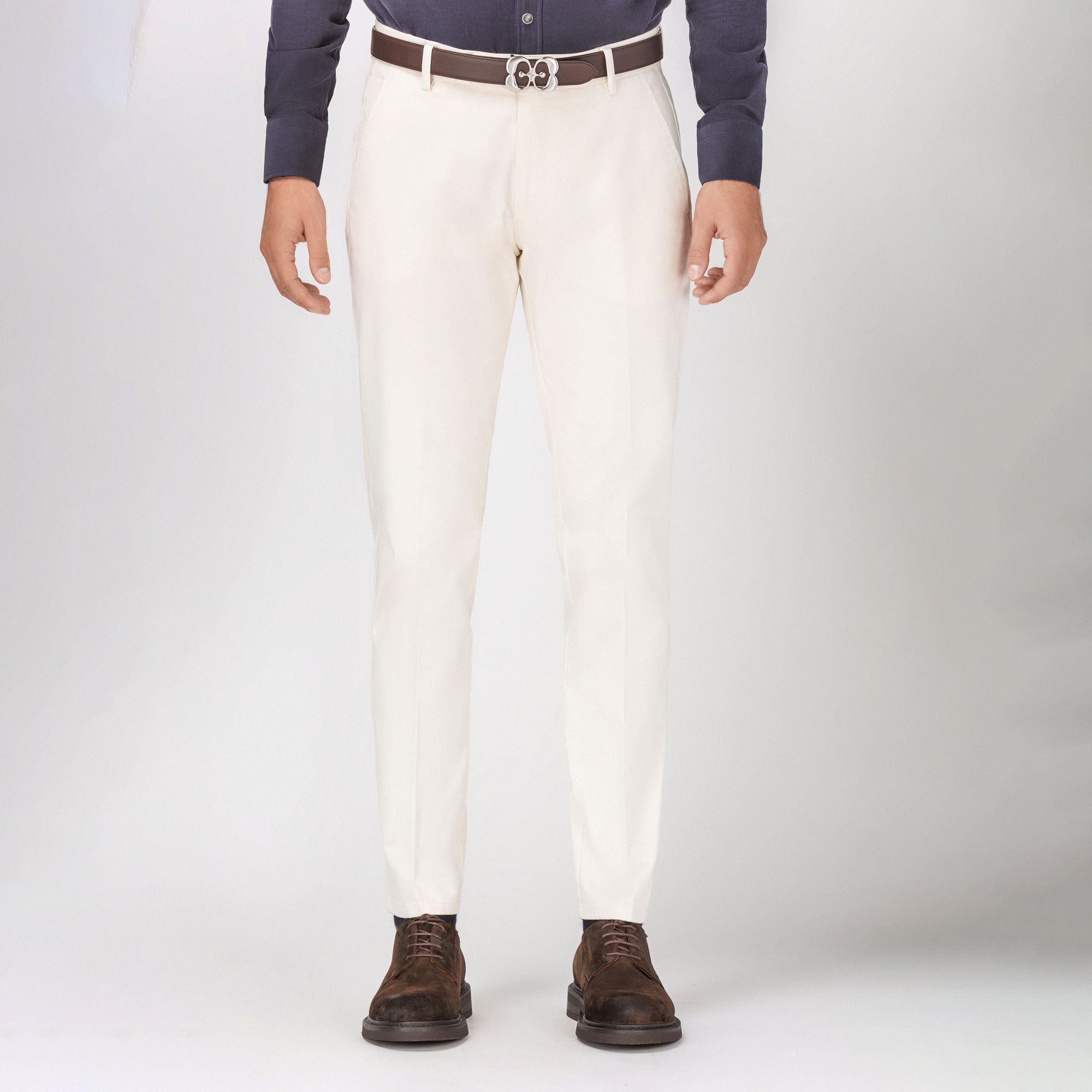 Η Elio Evan παρουσιάζει ένα ανδρικό chino παντελόνι σε κρεμ απόχρωση, που ισορροπεί την κομψότητα με την άνεση για ευέλικτες smart-casual εμφανίσεις. Κατασκευασμένο από πλυμένο ελαστικό βαμβάκι drill για μαλακή αίσθηση που διατηρεί τη δομημένη του σιλουέτα. Η ζώνη με προέκταση κουμπώματος, οι λοξές πλαϊνές τσέπες και οι πίσω τσέπες με καπάκι και κουμπί πίεσης προσφέρουν στυλ και πρακτικότητα. Η άψογη εφαρμογή το καθιστά διαχρονικό κομμάτι.
