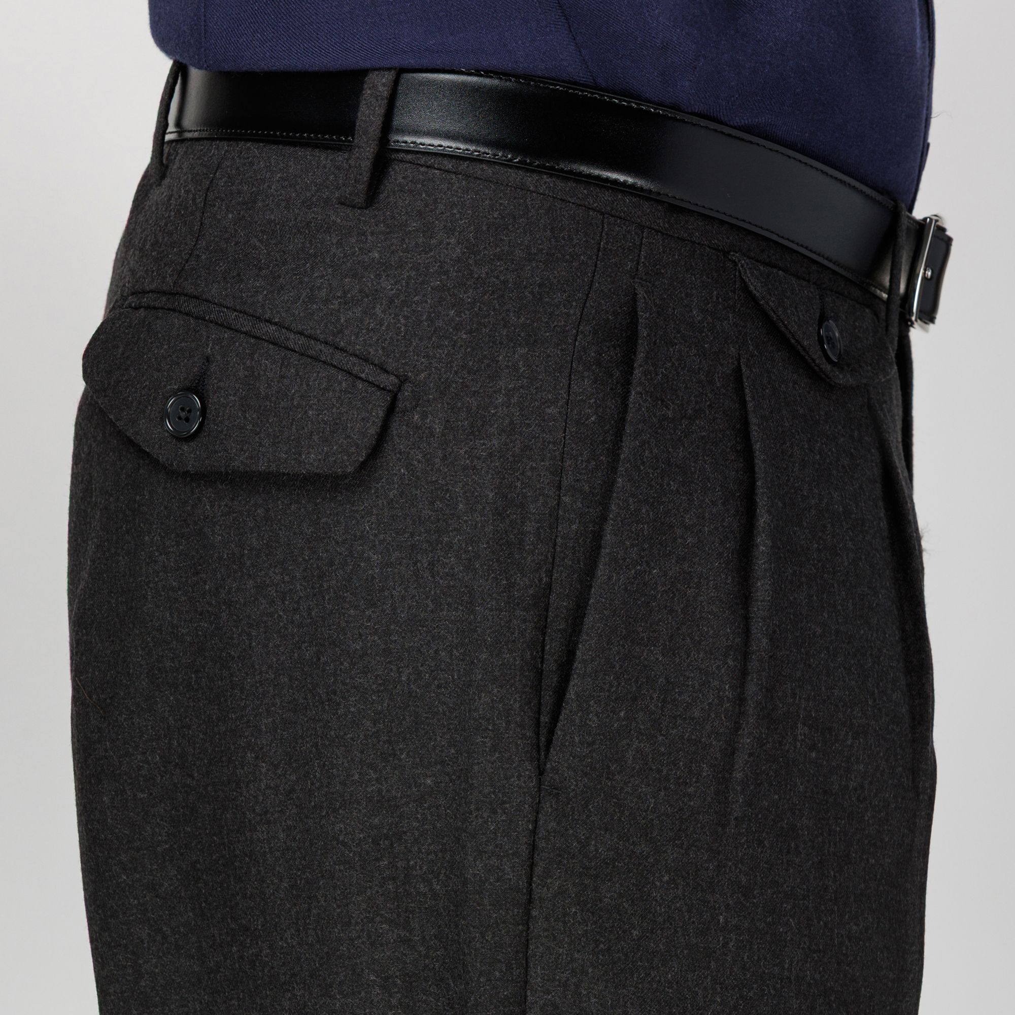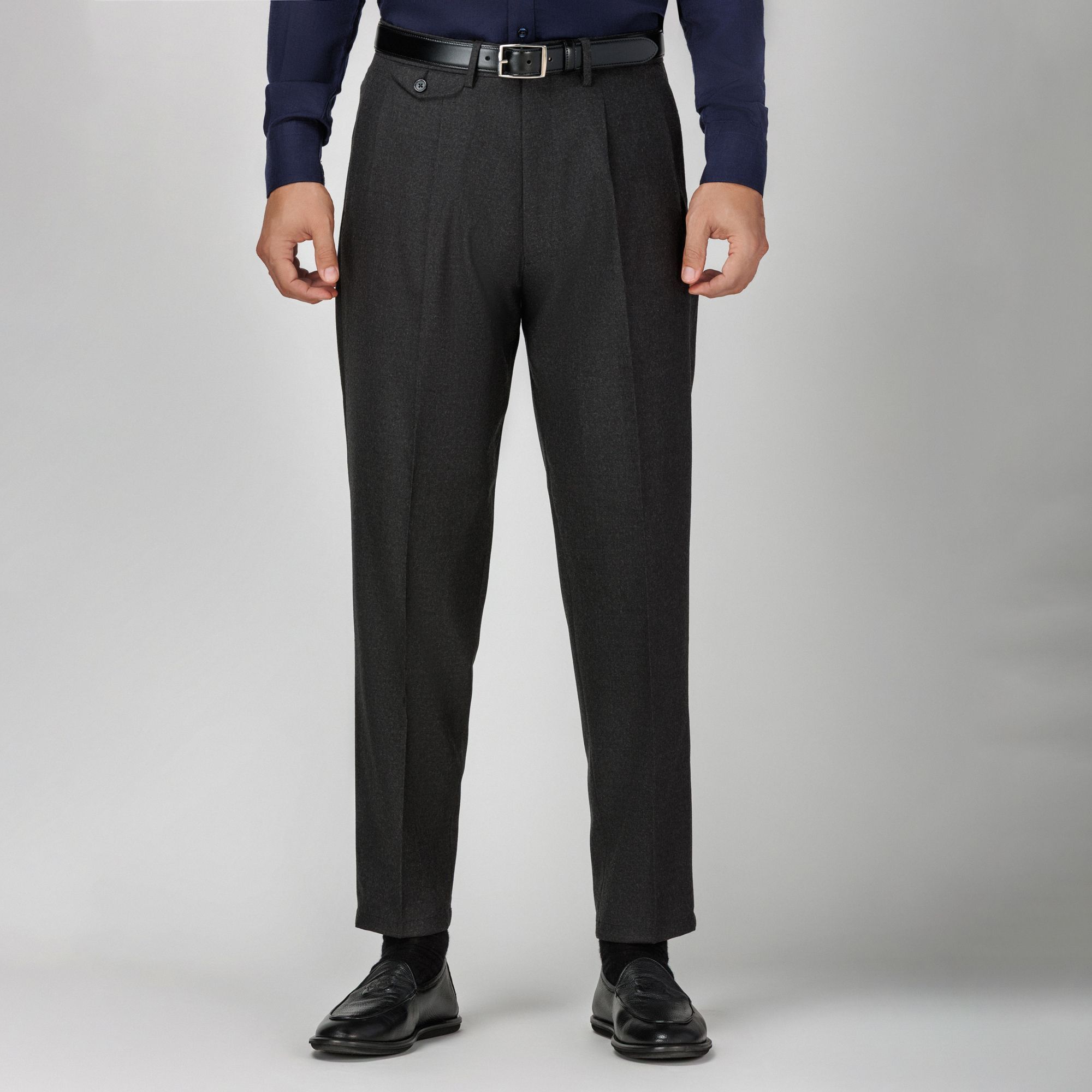 Το ανδρικό παντελόνι της Elio Evan σε γκρι ανθρακί απόχρωση είναι κατασκευασμένο στην Ιταλία από εκλεκτό wool blend ύφασμα, προσφέροντας ισορροπία ανάμεσα στην κομψότητα και την καθημερινή άνεση. Το μοντέλο Japan ξεχωρίζει με τη φαρδιά γραμμή, τη διπλή πιέτά, τις τσέπες με καπάκι και το ελαφρώς στενό τελείωμα. Με ανθεκτικό στο τσαλάκωμα και πλενόμενο ύφασμα, αυτό το ανδρικό παντελόνι σε γκρι ανθρακί αποτελεί ιδανική επιλογή για κομψές αλλά και casual εμφανίσεις, εκφράζοντας την υπογραφή της Elio Evan για άψογη εφαρμογή και τη διαχρονική αισθητική. Ένα ευέλικτο παντελόνι με πιέτες που αναδεικνύει την ιταλική ραπτική παράδοση με σύγχρονο στυλ.